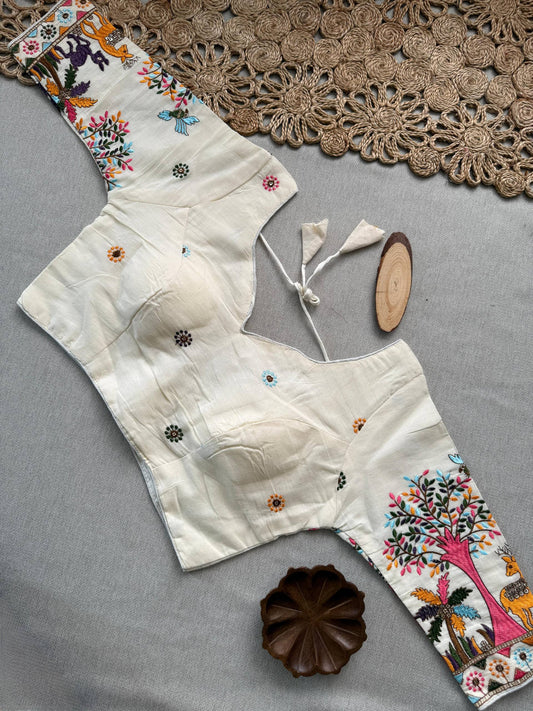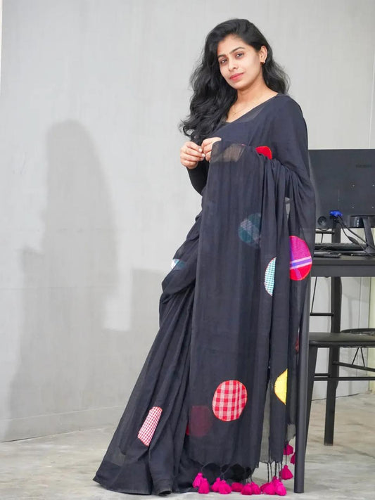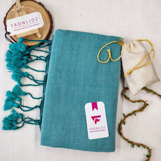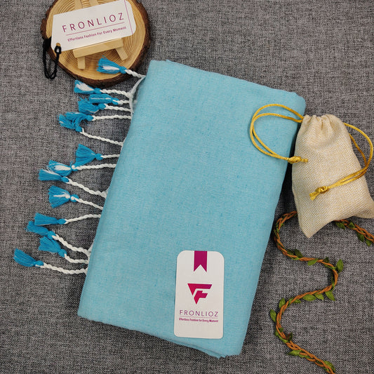 Sky Handloom Cotton Saree With Embrodery Work Stitched Blouse