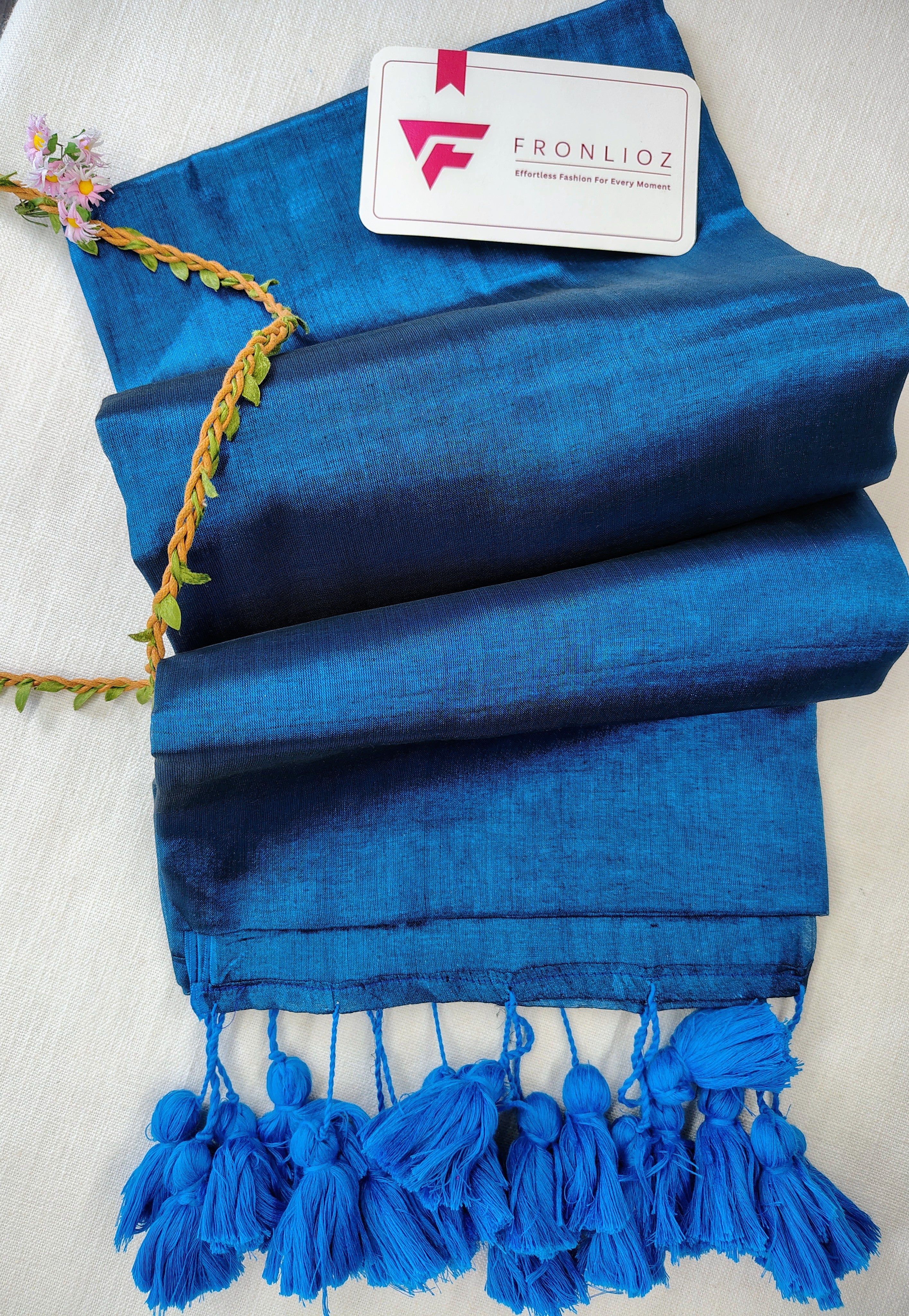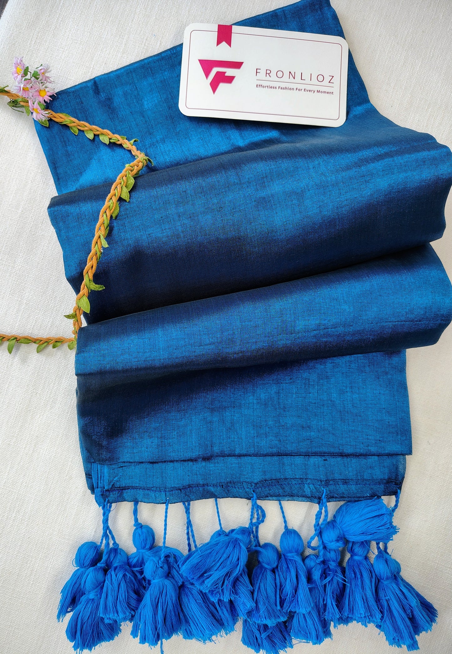 Fronlioz Navy blue Color Pure Khadi Silk Saree And Grey Codding Sequence Work
