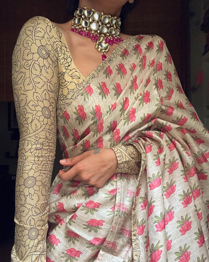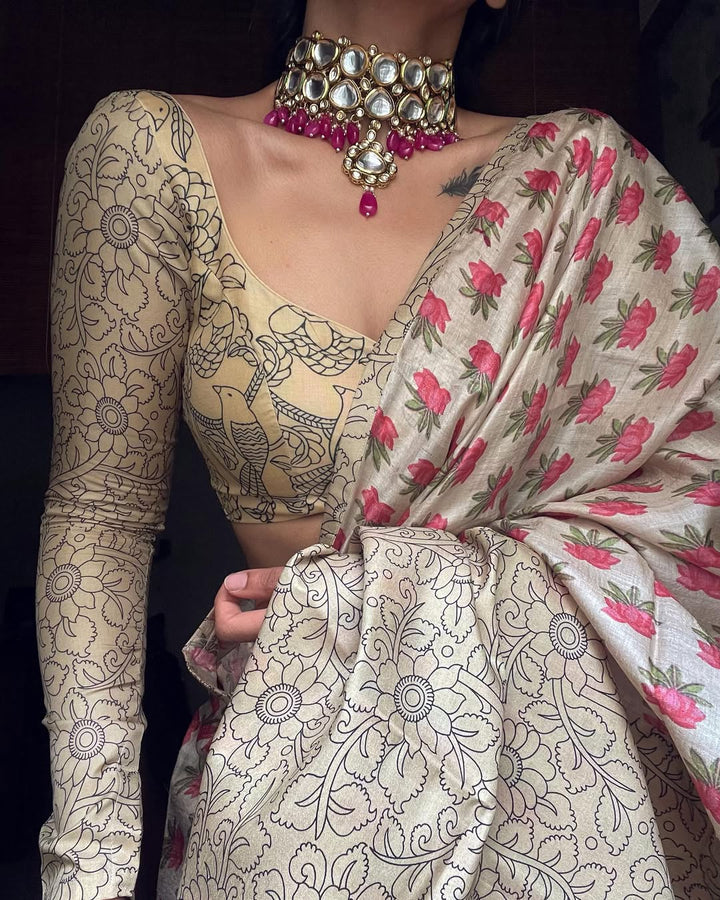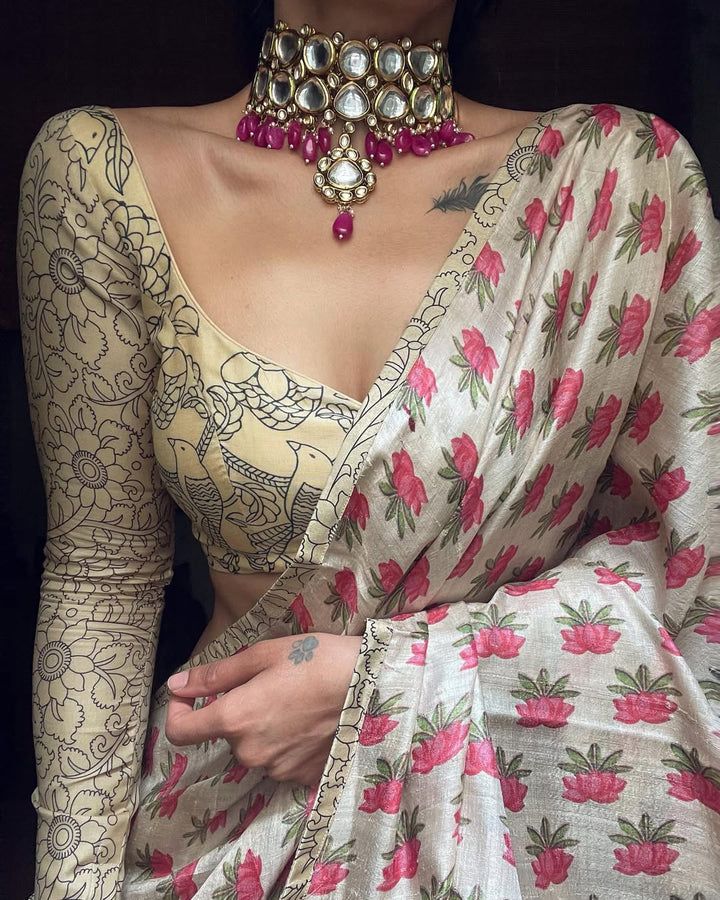 CREAM PRINTED SAREE