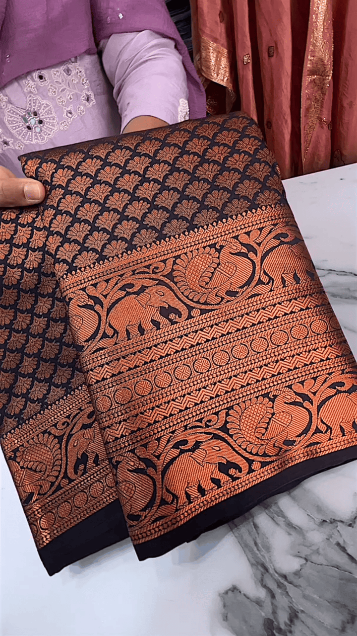 Elevate your wardrobe with our exquisite Exceptional Wine Soft Silk Saree featuring a Cynosure Blouse Piece. Made from the most luxurious silk fabric, this saree drapes effortlessly, enhancing your silhouette and exuding charm. The bold wine hue adds a touch of glamour, while the meticulously crafted blouse piece complements the saree perfectly.