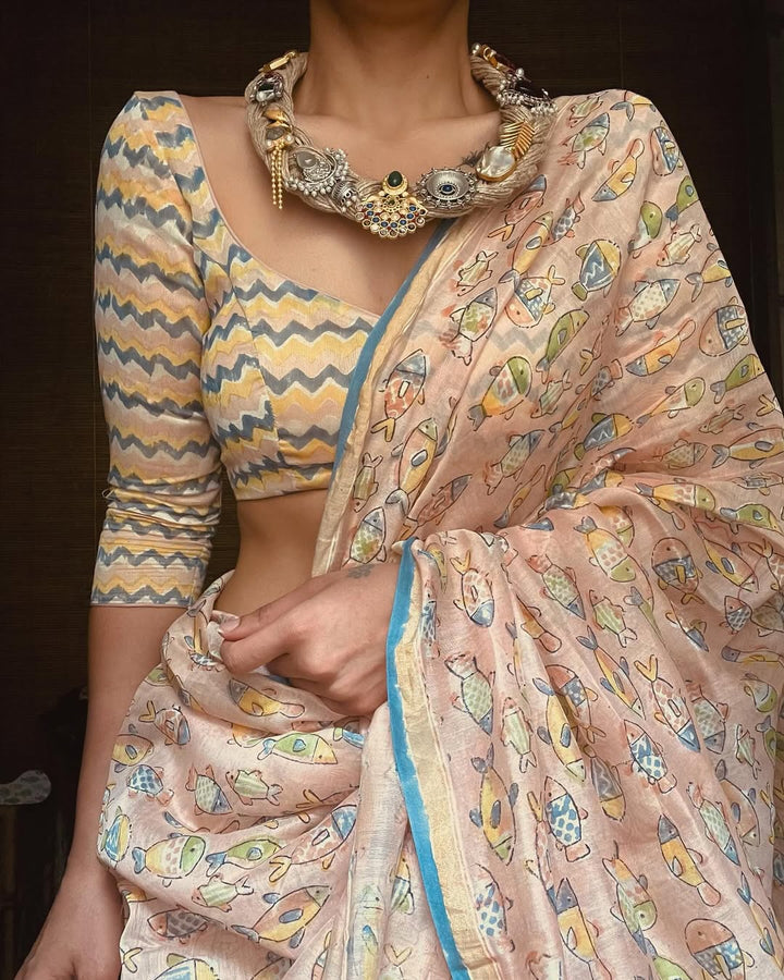 • The colors you see on your device may slightly vary due to the difference in individual's monitor. If you'd like to get better clarity kindly mail us before your purchase - https://thesyani.com/collections/printed-saree