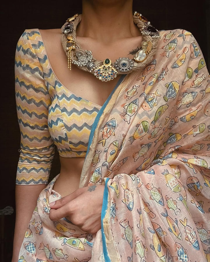 • Jewelry used for styling purposes only and is not for sale | Blouse materials will be curated by us for the sari.