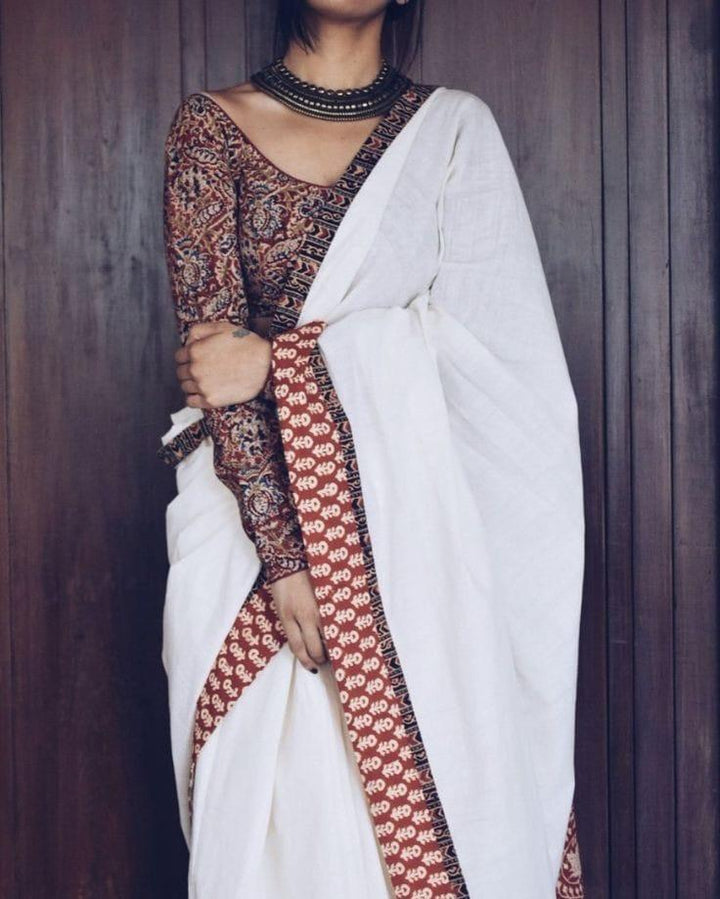 • Dual Shaded | White | Single Colour | Single Side Border &  Pallu